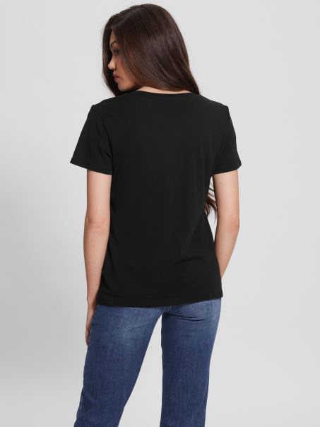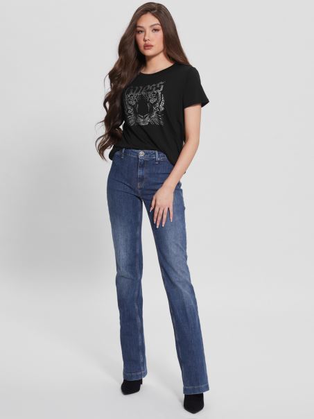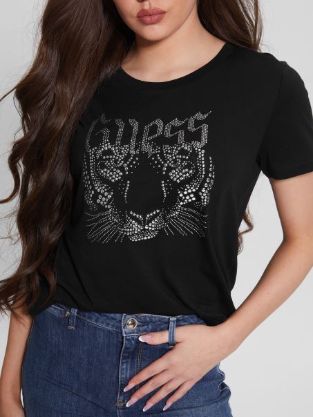 Tricou Cu Mânecă Scurtă și Decolteu Cu Un Logo Din Față Realizat Din Ornamente Metalice și Un Design De Tigru.