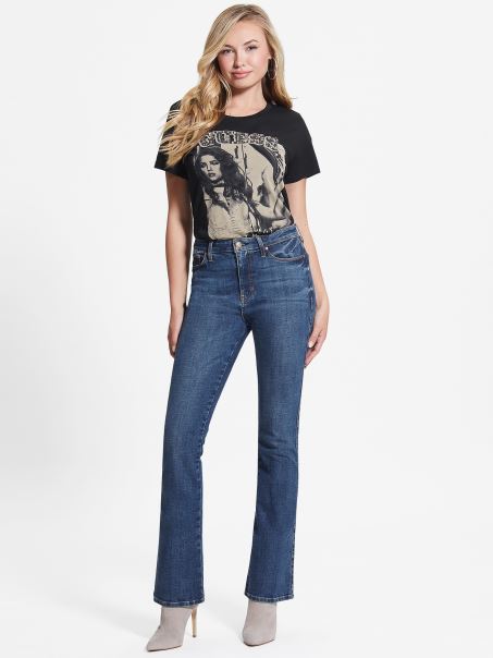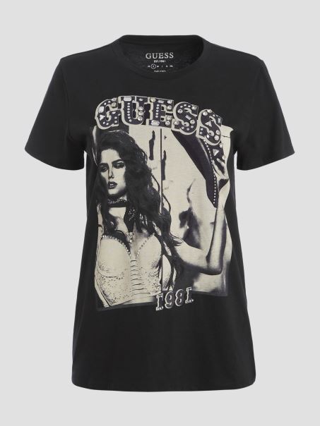 O Privire Pentru Vestul Sălbatic. Acest Tricou Din Jerseu Are O Grafică și Logo-ul Cowgirl Cu Aplicații Cu Strasuri, Decolteu și Mâneci Scurte. Fibre De Bumbac Organic.