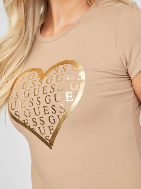 îndrăgostiți-vă De Acest Tricou Cu Gât Roșu, Cu O Inimă Din Folie Cu Detaliu De Text Cu Logo Repetat în Față.