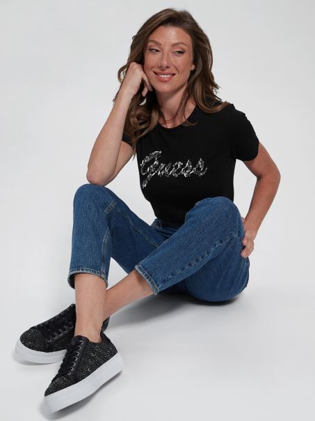 Un Tricou Cu Logo Clasic Cu O Actualizare De Bijuterii, Acest Decolteu Cu Mânecă Scurtă Are în Față Text Cu Scriere Cu Mărgele și Strasuri. Folosește Fibre De Bumbac Organic.