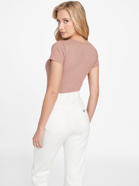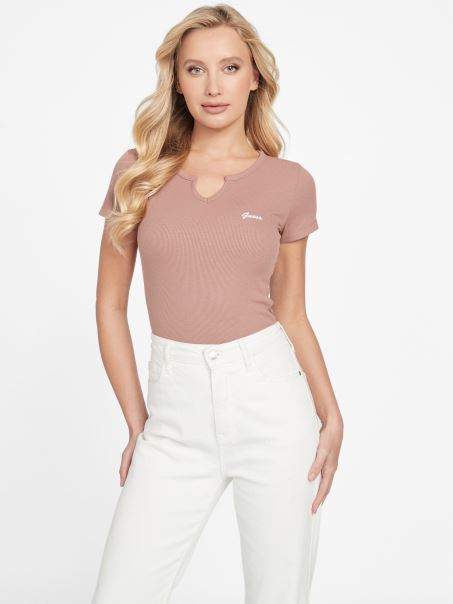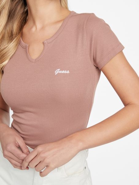 Tricou Cu Decolteu în V Cu Crestătură Cu Logo-ul Castanei Guess Yara