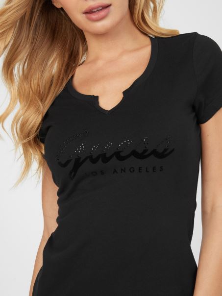 Tricou Cu Mânecă Scurtă, Cu Decolteu în V Crestat și Logo Elegant Cu Scris în Două Tonuri în Față.