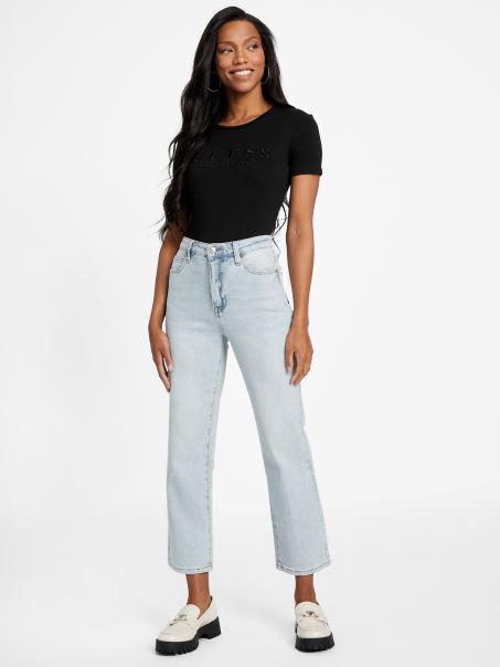 Tricou Cu Logo Brodat Guess Lizza, Negru Jet