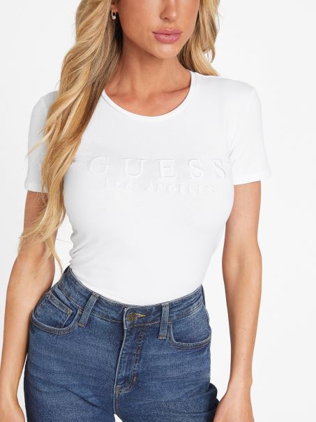 Tricou Cu Logo Brodat Lizza Guess Alb Pur