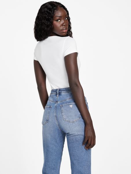 Tricou Cu Logo Cu Margele Eco Tu Alb Pur Guess
