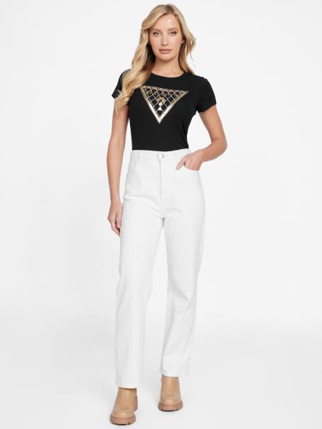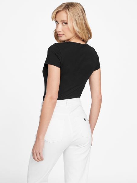 Tricou Cu Logo Cu Plasă Cu Strasuri Negru Jet Guess