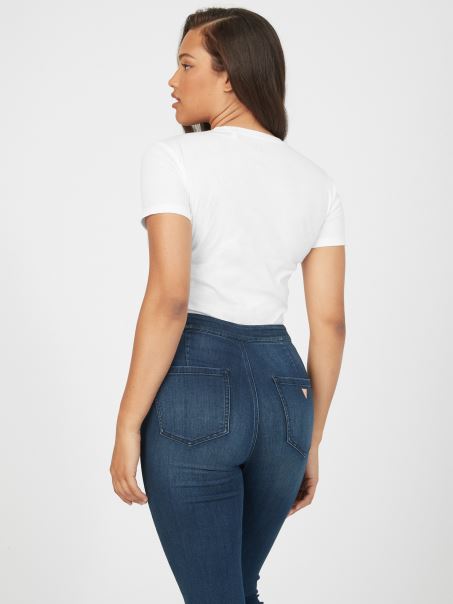 Tricou Cu Logo Lisey Strass Guess Alb Pur