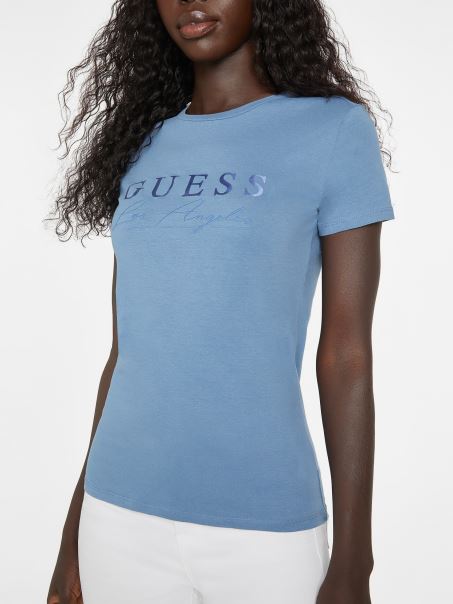 Tricou Cu Logo Sallie Rigel Blue Eco Guess