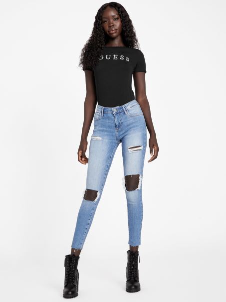 Tricou Cu Logo-ul Cu Strasuri Guess Jill Negru Jet