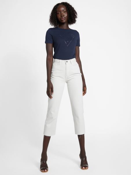 Tricou Cu Logo-ul Guess Zillah Cu Stras Deepest Blue