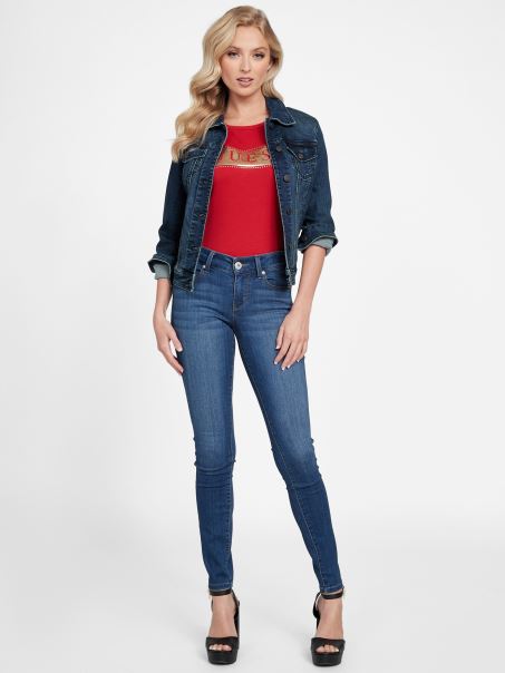 Tricou Cu Paiete Din Oțel și Strasuri Guess Rugby Red
