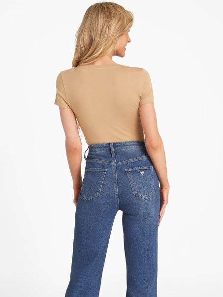 Tricou Cu Paiete Din Oțel și Strasuri Guess Taup Prăjit