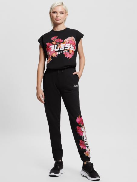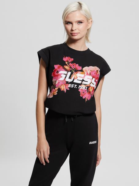 Tricou Decupat Cu Logo Floral Corine Guess Jet Black
