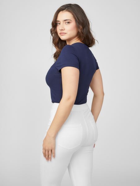 Tricou Guess Cu Paiete și Strasuri De Oțel Bleumarin Nocturn