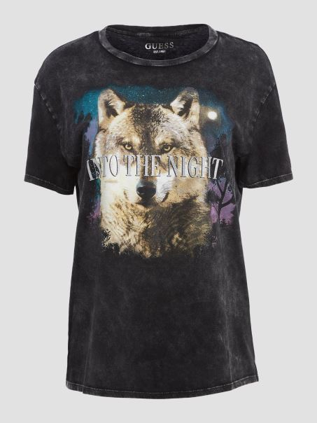 Tricou Guess Jet Black Multi în Noapte Ușor