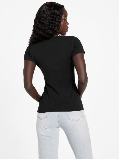 Tricou Negru Guess Eco Cece Love Cu Decolteu în V