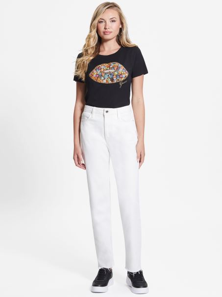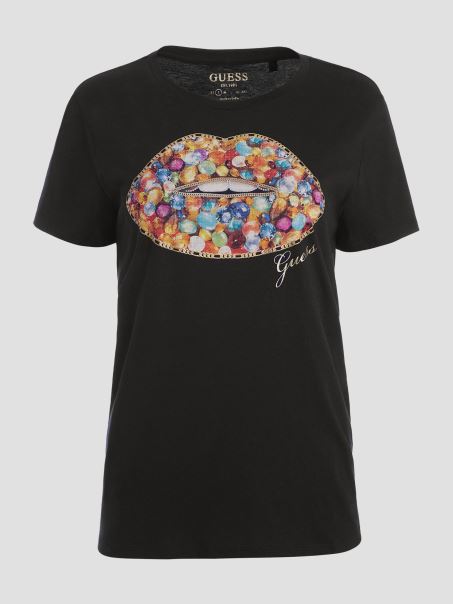 Bijuteria Coroanei Dulapului Tău, Acest Tricou Din Tricou Prezintă Un Grafic Pentru Buze Bijuterie și Zale, Cu Aplicații De Strass, Decolteu Cu Mâneci Scurte.