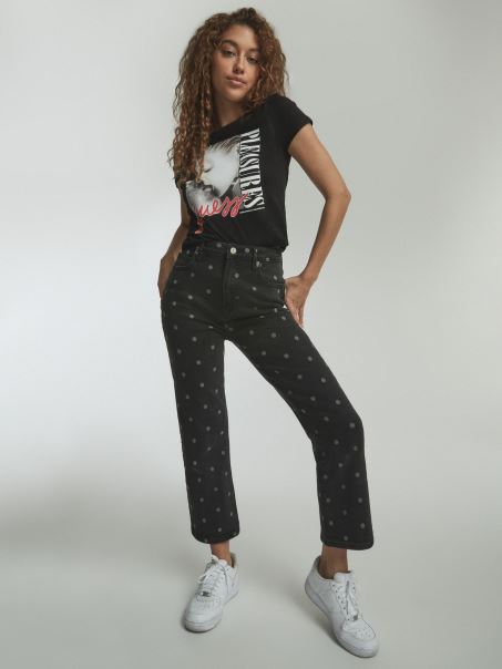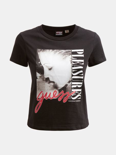 Home| Unisex| îmbrăcăminte| Vârfuri| Ghici Plasat Imprimeu Crop Top Negru