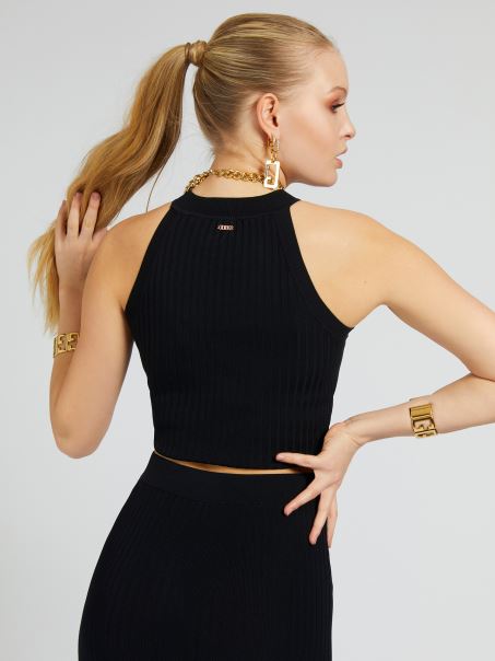 Home| Femei| îmbrăcăminte| Vârfuri| Crop Pulover Top Negru Guess