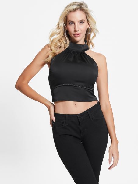 O Piesă Sexy, Care Nu Poate Rezista. Acest Top Charmeuse Greu Are Un Decolteu Simulat Cu închidere Cu Nasturi La Spate, Croială Fără Mâneci, Panou De Plasă Sub Bust Cu Inserție De Frânghie De Cristal și Fermoar Lateral Ascuns. Contine Plastic Reciclat.