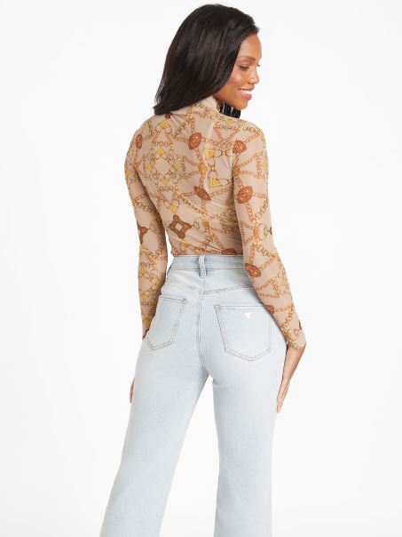 Eco Eara Top Cabana Scroll Spumos Taupe Guess
