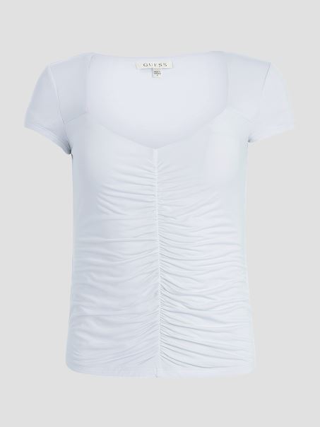 O Silueta Sexy Care Se Potrivește Cu Orice Fund. Un Top Din Jerseu Ultraușor, Cu Decolteu în Formă De Inimă, Mâneci Tip șapcă și Volană Centrală în Față. Materii Prime Eco-responsabile.