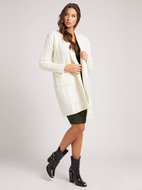 Home| Femei| îmbrăcăminte| Vârfuri| Guess Cardigan Amestec De Lână Alb