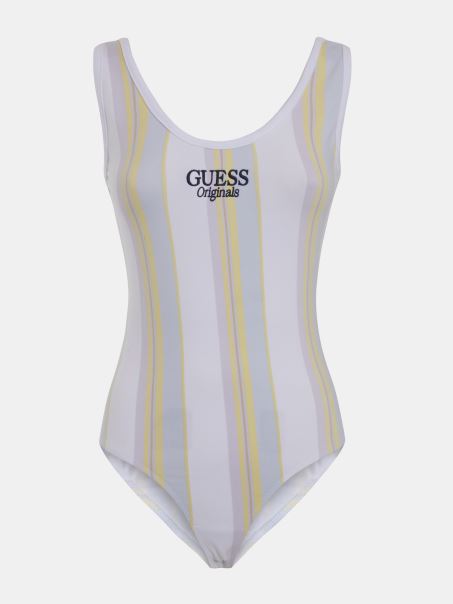 Guess Corp Cu Dungi Alb Cu Logo Multiplu