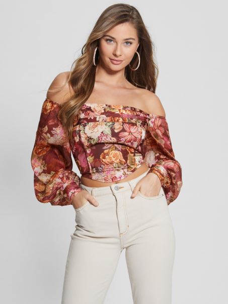 Acest Top Feminin Este Conceput într-o Siluetă De Pe Umăr, Mâneci Balon Dramatice și Tiv în Stil Corset. Completat Cu Inchidere Cu Fermoar La Spate.