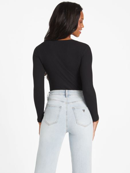 Strălucește în Acest Top Din Tricot în Coastă, Cu Decolteu în V, Logo Cu Strasuri și Mâneci Lungi.