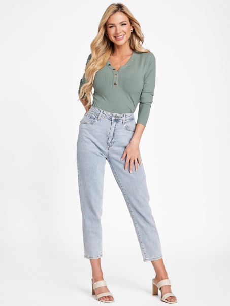 Un Top Casual Drăguț Din Tricot în Coastă, Care Se Stratifica Cu Ușurință, Are Un Decolteu în V, Mâneci Lungi, Plăcuță Cu Nasturi și Detalii. Fibre Din Păduri Gestionate Responsabil.