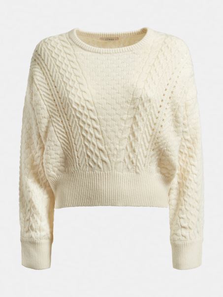 Home| Femei| îmbrăcăminte| Vârfuri| Pulover Alb Cu Cabluri Guess