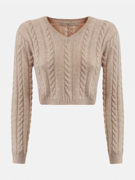 Home| Femei| îmbrăcăminte| Vârfuri| Pulover Bej Guess Din Amestec De Lână