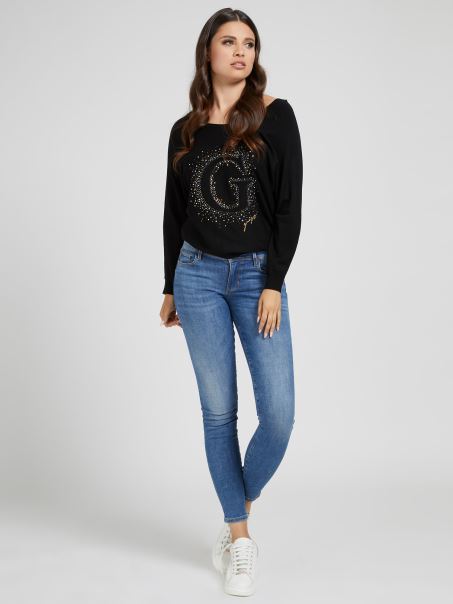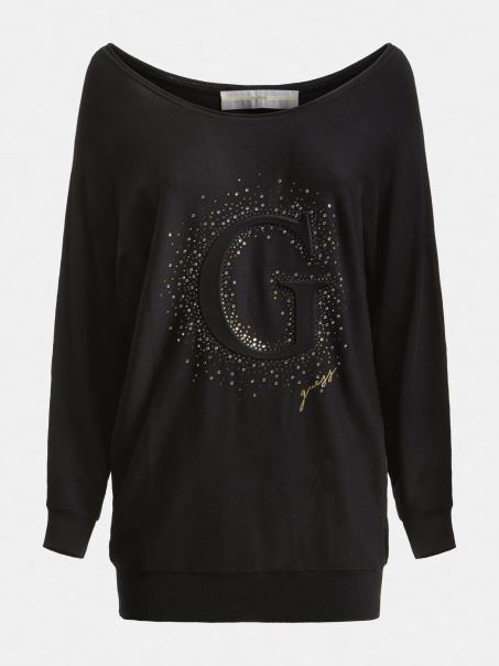 Home| Femei| îmbrăcăminte| Vârfuri| Pulover Cu Broderie Logo G Negru Guess