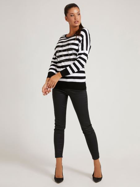 Home| Femei| îmbrăcăminte| Vârfuri| Pulover Cu Broderie Logo Guess Cu Model Multicolor