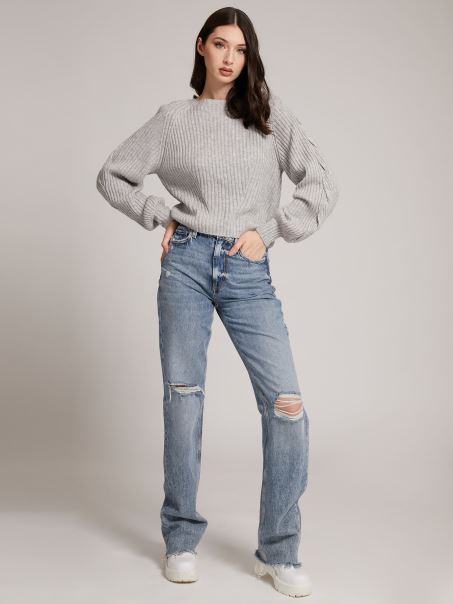 Home| Femei| îmbrăcăminte| Vârfuri| Pulover Din Amestec De Lana Cu Nervuri Gri Multi Guess