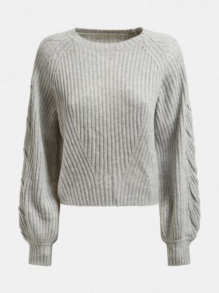 Pulover Din Amestec De Lana Cu Nervuri Gri Multi Guess