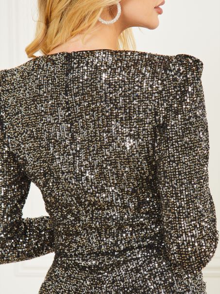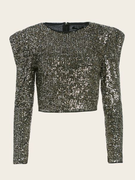 Lasa-ti Aspectul Sa Straluceasca Toata Noaptea Cu Acest Top Captusit Cu Maneca Lunga Acoperit Cu Paiete Stralucitoare Pentru Un Efect Fascinant. Finisat Cu Perne De Umăr Sofisticate și O închidere Ușoară Cu Fermoar Invizibil La Spate. Parte Dintr-un Set De Potrivire.