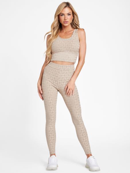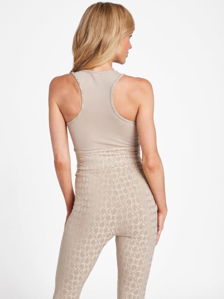 Un Top Elegant Din Microfibră Activă, Cu Logo-ul Jacquard G, Decolteu Deschis, Cusătură La Bust, Croială Fără Mâneci și Spate Raser Cu Inserție Din Plasă Puternică.