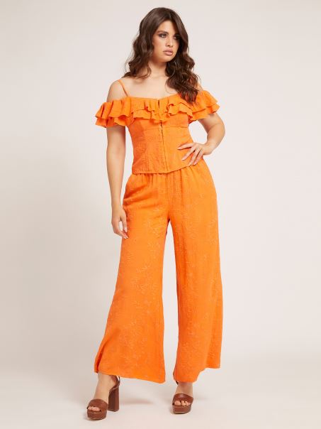 Home| Femei| îmbrăcăminte| Vârfuri| Top Cu Volan Brodat Portocaliu Guess
