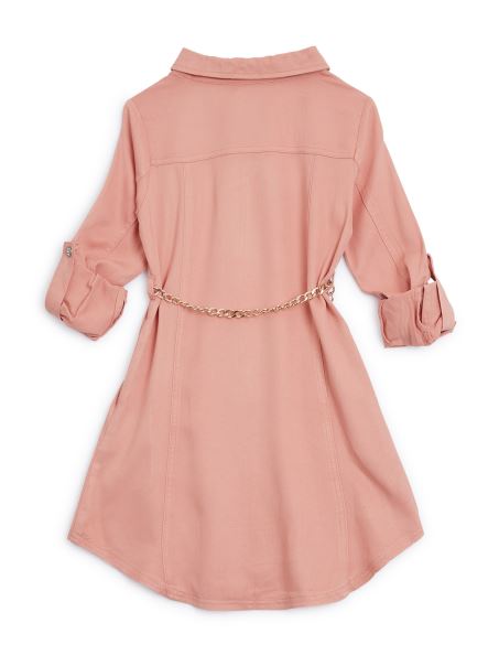 Un Stil șic Pentru A Le înveseli Dulapul, Această Rochie Cămașă Este Concepută Cu Guler Pliat, Detaliu Logo Cu Strasuri, închidere Cu Fermoar în Față și Curea Cu Lanț Inclusă în Talie. Completă Cu Mâneci Lungi Cu Lamele Rulante. Stil: Ggu16944w