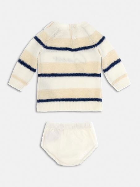 Home| Fată| 0-24m| Vârfuri| Guess Rochie în Dungi Albe și Set De Chiloți