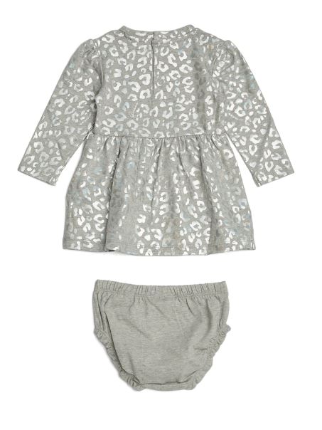 Ea Va Ieși în Evidență în Această Rochie Fermecătoare Din Jerse, Cu Imprimeu Leopard Irizat, Un Logo Brodat Colorat, Mâneci Lungi și Decolteu înalt. Bluze Din Jerseu Incluse.