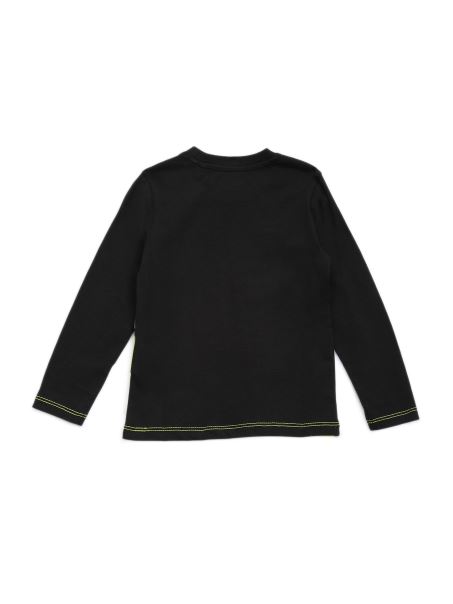 Un Adaos în Dungi Pe Care îl Poate Pune în Rotație. Tricou Marmorat Cu O Față în Dungi și Blocate De Culoare, Logo, Decolteu în Formă De Echipaj și Mâneci Lungi.