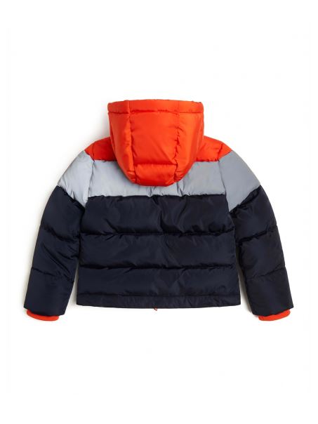 Jachetă Puf Cu Glugă, Bloc De Culoare Roșu/albastru (7-16) Guess