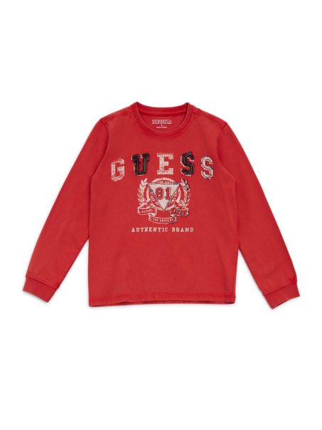 Tricou Cu Logo Guess Eco Cu Mânecă Lungă (7-14) Roșu Vulcan